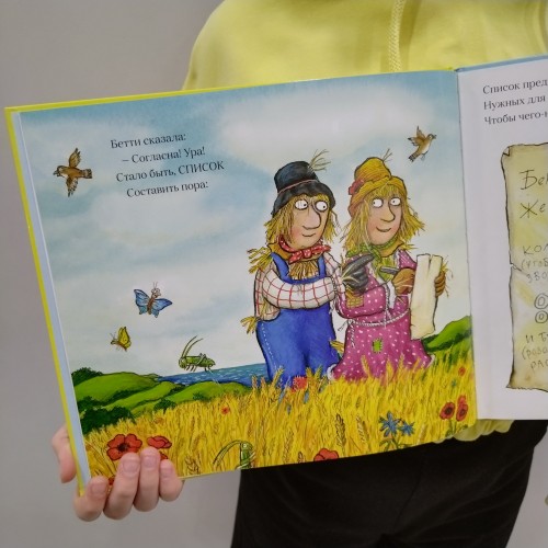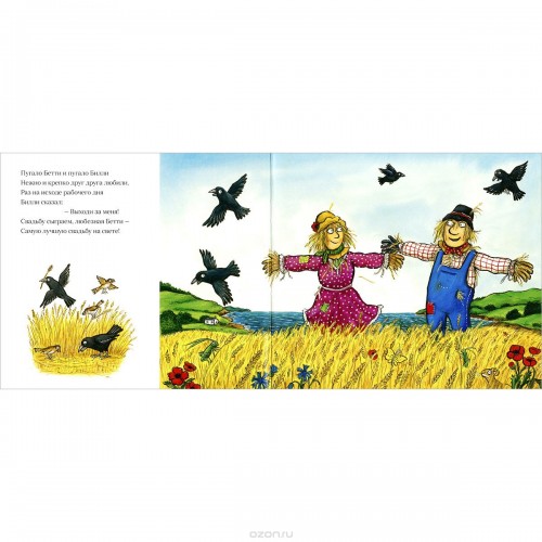 "Согласна! Ура!" - сказала Бетти, и молодые принялись за приготовления. Портной паучок сшил пышное платье из белых как снег гусиных перьев. Коровы одолжили свои колокольца - чтобы весело трезвонить на свадьбе. Краб нанизал бусы из пестрых раковин. Шустрые мышки обшарили двор - добыли кольца от стареньких штор. Осталось нарвать большущий букет, и Билли отправился за ним. Но вот прошел один день, за ним второй, а Билли все нет. Бетти в тревоге: вдруг он другую навек полюбил? А между тем, фермер выставил в поле новое пугало - Гарри. Он франт и любезник и хочет расстроить свадьбу.