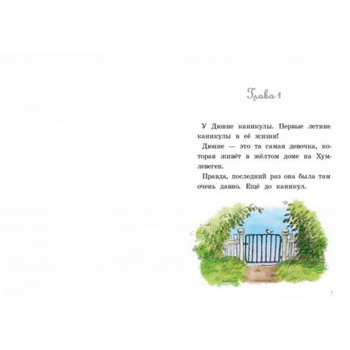Долгожданные летние каникулы Дюнне - той самой, что живет на Хумлевеген и закончила первый класс - предстоит провести в гостях у лучшей подруги Эллы-Фриды в большом доме на острове. Лето проходит замечательно: девочки купаются по пять-шесть раз в день, играют и веселятся, а ещё - подрабатывают. Каждое утро подружки торопятся на пристань, куда ровно в 9:10 причаливает катер, и пассажиры с удовольствием покупают свежие булочки, кофе и сок. Успеть всё продать за несколько минут, пока катер не двинется дальше - очень азартно! А вечерами Дюнне болтает по телефону с папой. "Я счастлива, и пусть так будет всегда!" - думает девочка. Всё так и есть, пока однажды кузен Эллы-Фриды не раскрывает секрет… К такому повороту событий Дюнне была совсем не готова!