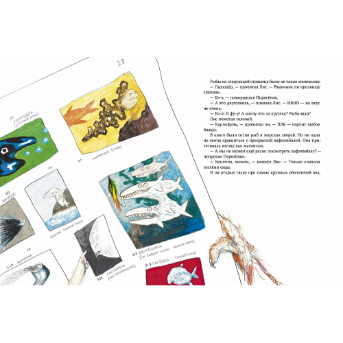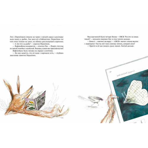 Очередное приключение Лиса и Поросёнка началось с книги о рыбах, которую они рассматривали. Каких только рыб там не было! Горлодёр и двуголавль, ржавчник и карпофель, шилозад и дымойва... Но всех их затмила прекрасная вафлямбала. Похожая на сердце в клеточку, аппетитная, как вафля, хоть с вареньем ешь, — как тут устоять!
